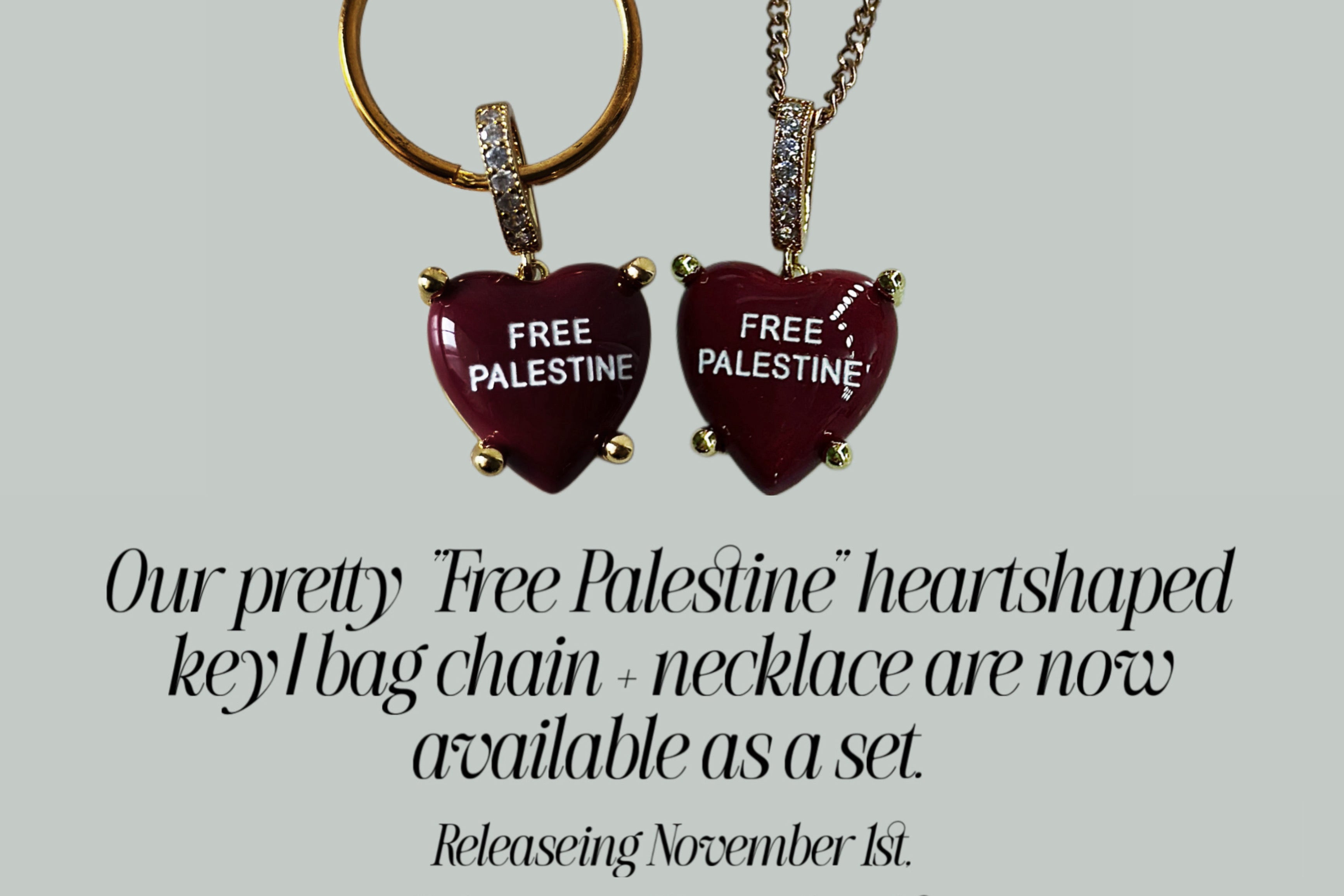 Limited Edition! ‘FREE PALESTINE’ HEARTSHAPED PENDANT NECKLACE | CHERRY RED